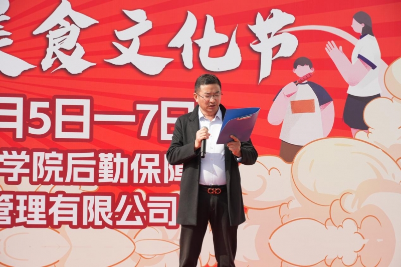 后勤保障处解旭峰作为活动主办方代表表态发言,后勤保障处始终以服务师生为核心宗旨,致力于打造安全、健康、美味、多元的校园餐饮服务体系。通过美食文化节,更好地传承地域饮食文化,丰富校园生活,让学生感受到校园生活的温暖与美好。