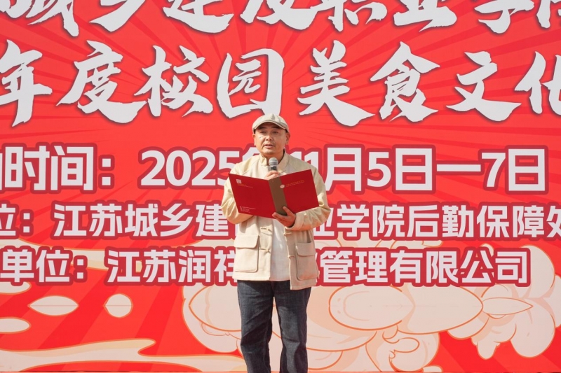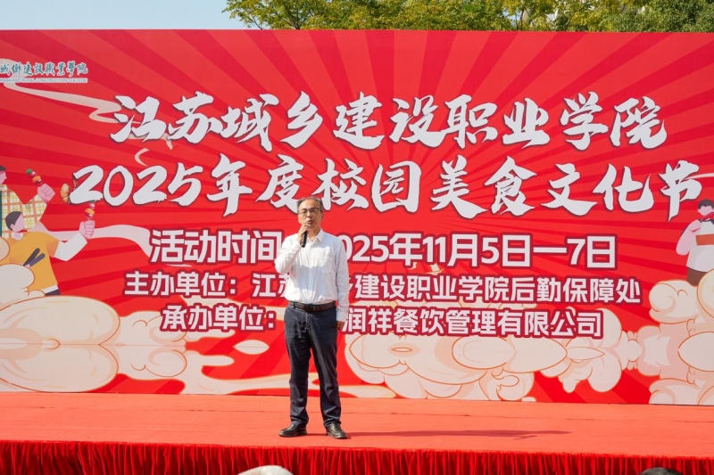 11月5日上午,我校2025年度校园美食文化节在学校本味楼广场盛大开幕。本届美食节由后勤保障处主办,江苏润祥餐饮管理有限公司承办。江苏城乡建设职业学院副校长袁乐、建筑艺术学院党总支书记袁平、招生就业处处长徐筱明、后勤保障处处长梁月清、副处长耿兴军及合作企业代表江苏润祥餐饮管理有限公司总经理蒋树东等嘉宾莅临现场,与师生代表共同见证了这一精彩时刻。学生社团的歌舞表演和一段活力四射的开场鼓舞瞬间点燃了现场气氛。